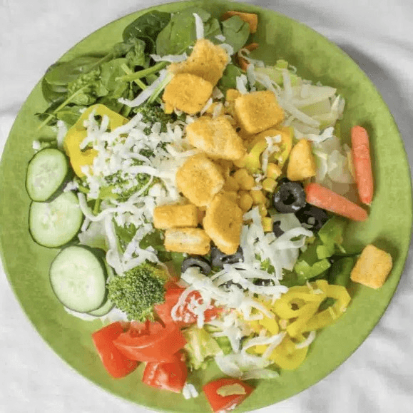 Red onions, fresh tomatoes, bell peppers, fresh mushrooms, black olives, with our homemade pizza sauce.