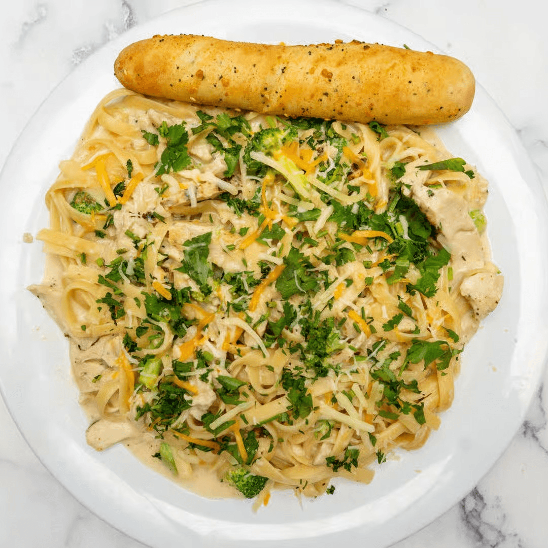 Seasoned frilled diced chicken breast and sauteed in a creamy alfredo sauce atop freshly prepared fettuccine
