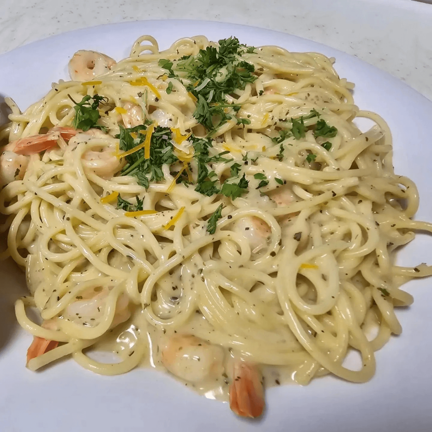 Seasoned grilled shrimp in a creamy alfredo sauce and your choice of spaghetti or fettuccine