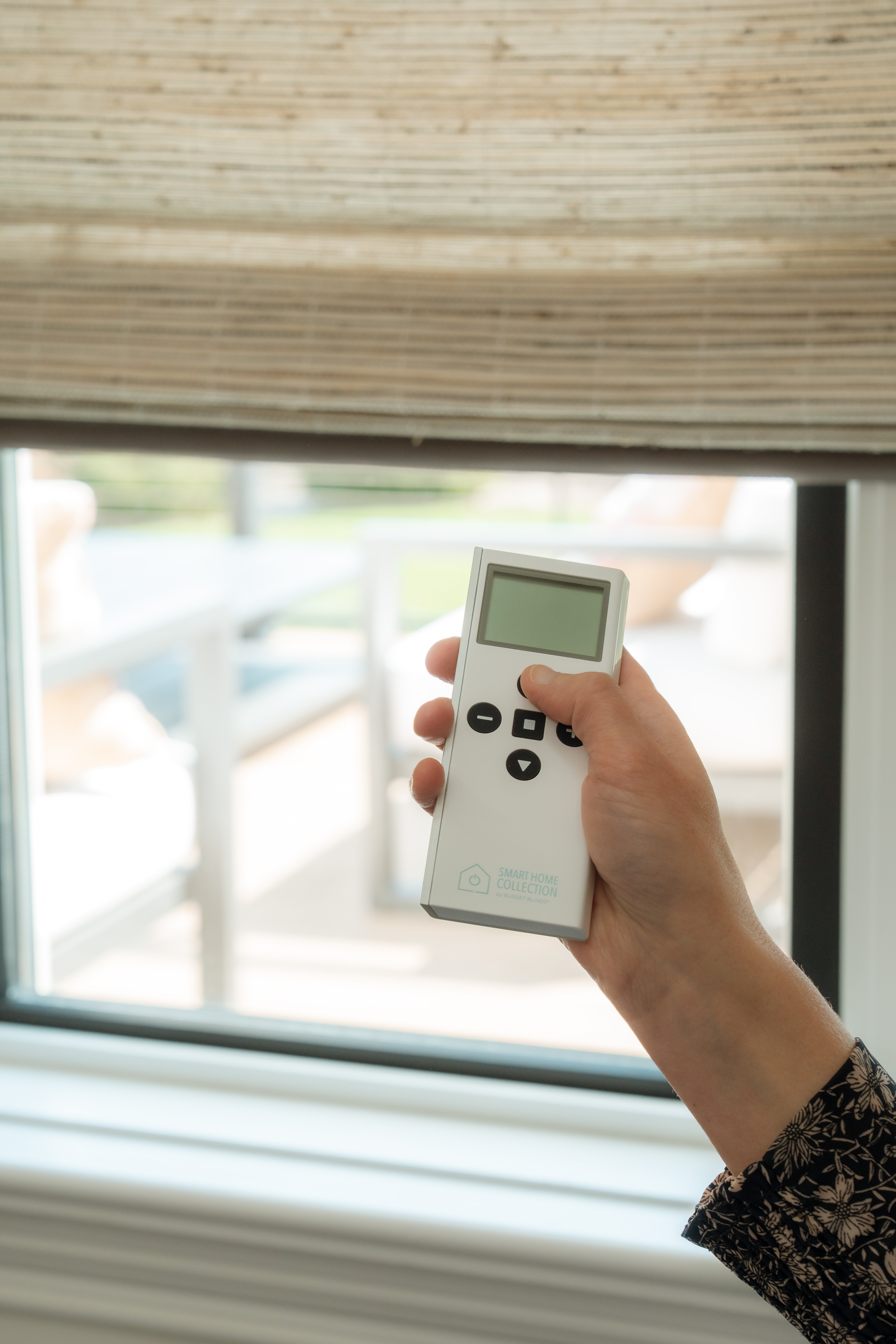 Motorized window treatments are window coverings, such as blinds, shades, or curtains, that can be opened, closed, or adjusted using a motor rather than by hand. These systems are typically controlled via remote control, wall switch, Smartphone app, home automation system, and voice assistants (e.g. Amazon Alexa, Google Assistant, Siri). As a leader in innovative window solutions, Budget Blinds offers an extensive selection from our exclusive Smart Home Collection as well as products from trusted brands like Lutron®, Somfy® and Hunter Douglas.
